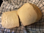 Turn the well-mixed dough onto a board lightly dusted with flour, and knead until it is pliable, elastic, and smooth. Plop it into a lightly oiled bowl and place it away from drafts before covering with a damp towel. (Placing a sheet of oiled parchment paper between the dough and towel prevents the dough from sticking to the towel.) Allow dough to rise until doubled in size (about 30 minutes). Be sure not to over-proof or you’ll ruin your rise. Punch dough down and divide into equal parts. Place into two well-greased loaf pans and let rise until the dough just reaches the top rim of the pans. Bake at 400°F for 40 minutes. Allow to cool thoroughly (at least 1 hour) before slicing.